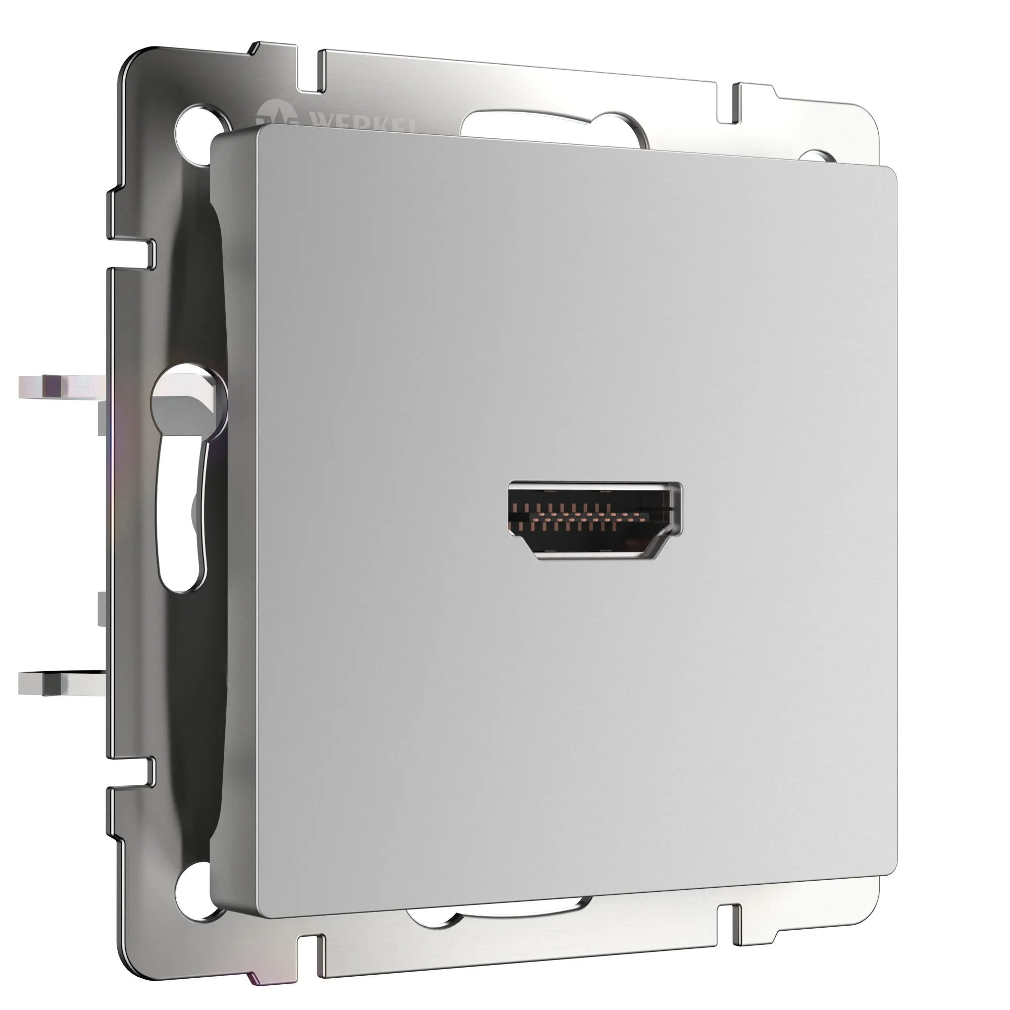 Механизм с основой из нержавеющей стали монтируется в монтажной коробке и надежно закрепляется с помощью винтов и крепежных лапок. Внешняя панель изготавливается из прочного поликарбоната, устойчивого к ударам и высоким температурам. Розетка HDMI совместима со всеми рамками из каталога Werkel, что дает возможность создать уникальные дизайнерские решения, сочетающиеся по стилю и цвету.