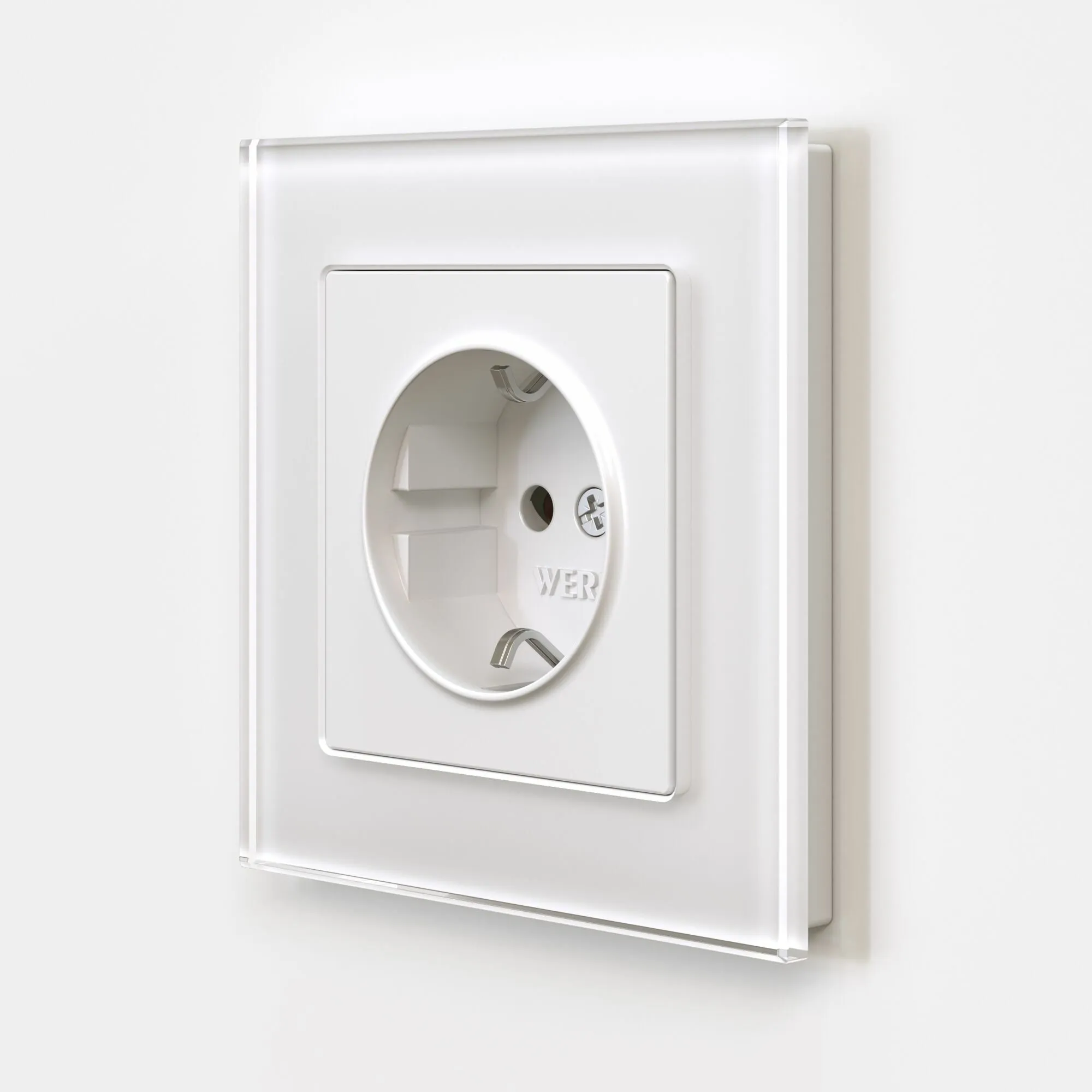 Лицевая панель выполнена в матовом белом цвете с бархатистой фактурой и тактильной мягкостью. Такая поверхность не бликует, не притягивает пыль и идеально вписывается в любые стили — от скандинавского минимализма до лофта и классики. Белый цвет гармонично сочетается с любыми отделочными материалами, а универсальная совместимость со всеми рамками Werkel позволяет создавать индивидуальные композиции под ваш вкус.