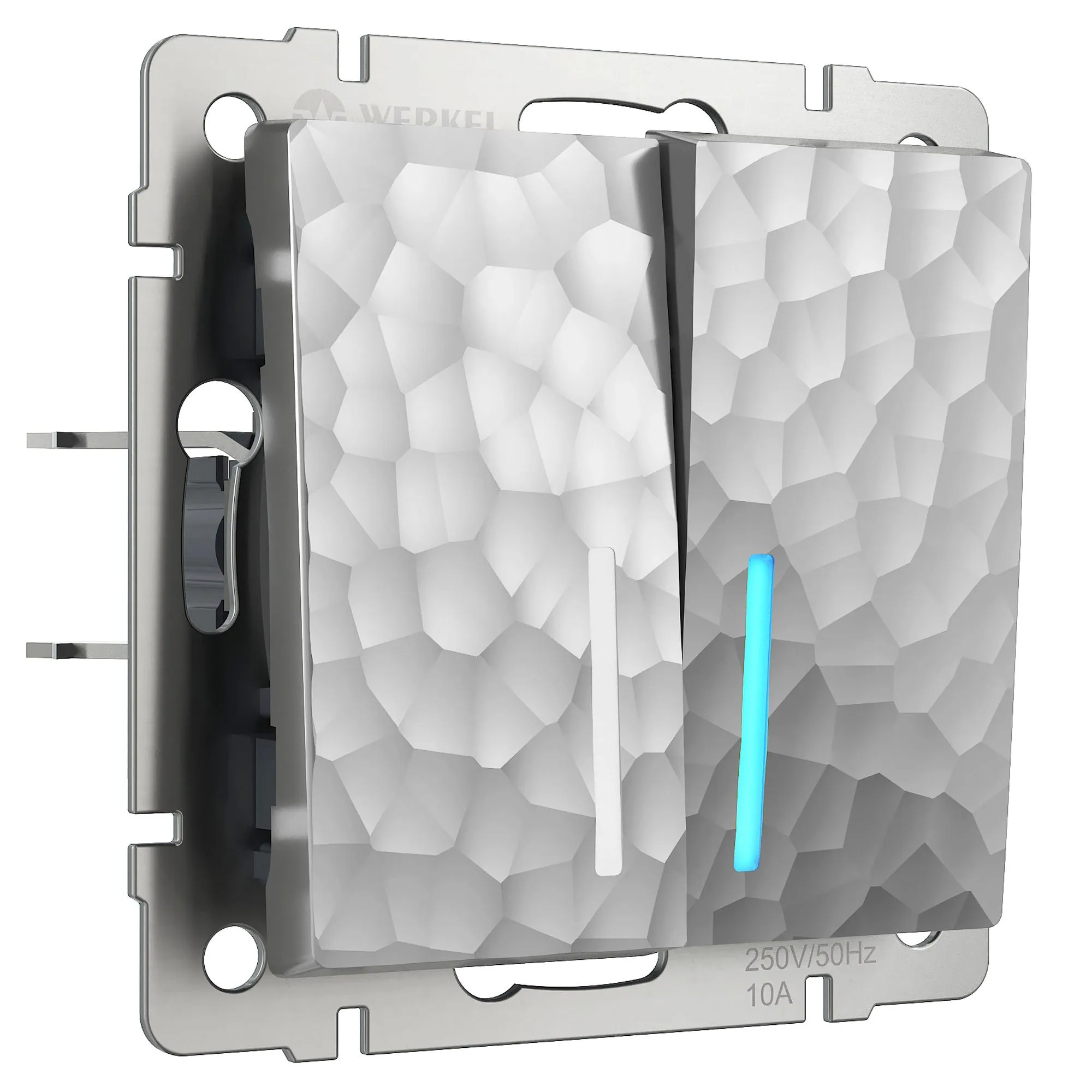Выключатель двухклавишный проходной с подсветкой Werkel серебряный матовый — управление светом из двух точек + комфорт в темноте