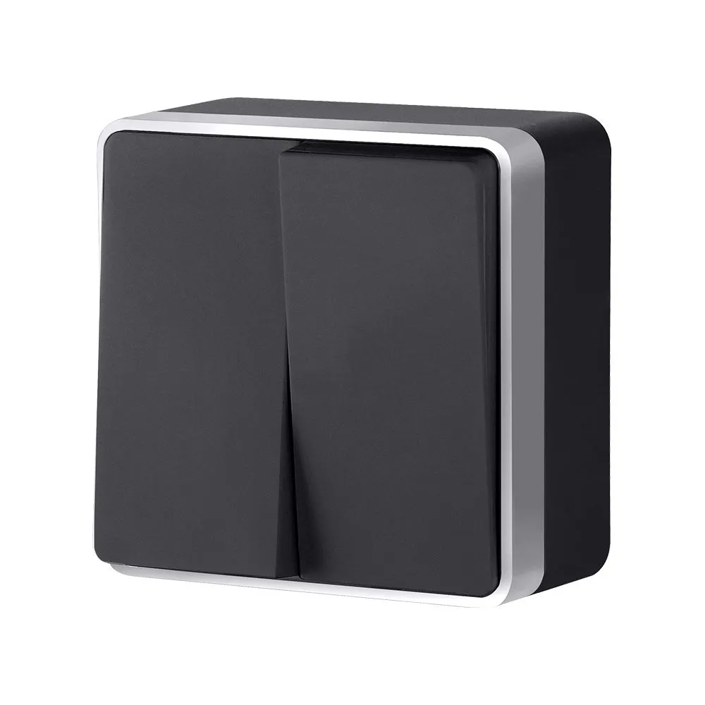 Выключатель двухклавишный влагозащищенный Gallant (черный/серебро) W5020234