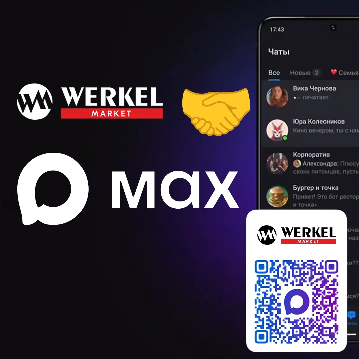 Мы рады сообщить, что компания Werkel.market расширяет каналы коммуникации с клиентами! Теперь связаться с нами можно не только через привычные WhatsApp и Telegram, но и в популярном российском мессенджере MAX.